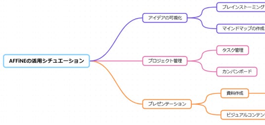 ドキュメント作成、タスク管理、マインドマップ作成、プレゼン資料の作成などを一つの環境で完結できる統合型ツールです。さらに、上位版の「AFFiNE 1年版 AIプラン」では、AI技術を活用した生産性を向上させる革新的な機能を提供します。
