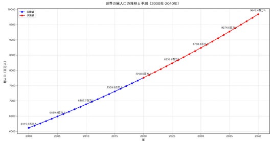 ※世界の総人口の、これまでの推移と今後の予測をグラフ化させた結果