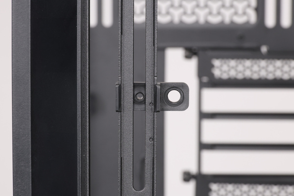 もう1つは、前面パネル部分だ。前面パネルは簡単に取り外しが可能で、内側のフィルターの掃除も楽に行なえる。この前面ファンの取り付け部分にも、InfiniRailファン取り付けシステムが採用されている。