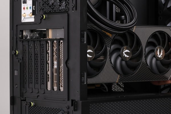 ガラスサイドパネルで内部が見えるということは、パーツを魅力的に見せるPCが組めるということでもある。こういったときにやりたくなるのが、ビデオカードの縦挿しだ。
