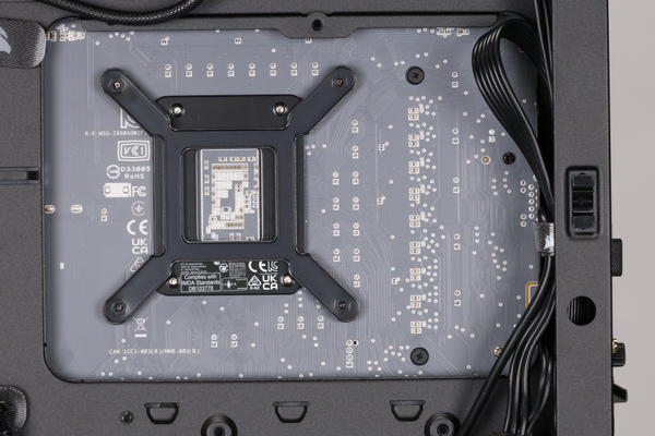 なお、マザーボード裏の保護プレートは、ファンやライトアップ機能をコントロールするiCUE LINKシステムハブの固定場所にできるほか、2.5インチSSDなどの装着にも対応。ただのプレートではなく、ドライブベイなどとして活用できるというのも魅力だ。