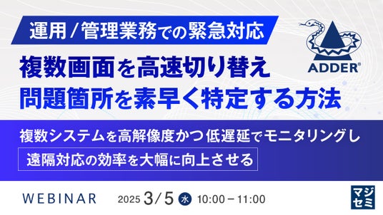 本セミナーでは、次世代IP-KVMであるADDER Technology 社製品を通して、遠隔メンテナンスにおける緊急対応や効率化、省人化を実現するための様々な構成例を詳しく解説します。