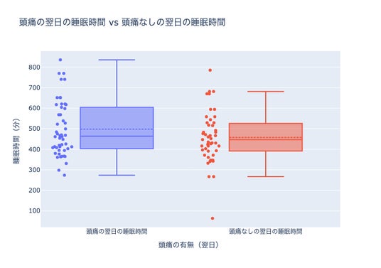 その差は40分でした。日中に頭痛があることで、睡眠時間を長めに取る傾向が見られ、日常生活への支障が生じている可能性が示唆されます。