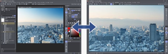編集用のツールや情報の表示エリアを折りたため、画像を大きく表示して作業できます。