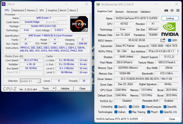 | グラフィックス | GeForce RTX 4070 Ti SUPER、GDDR6X 16GB |