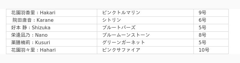 花園羽香里、院田唐音、好本 静、栄逢凪乃、薬膳楠莉、花園羽々里