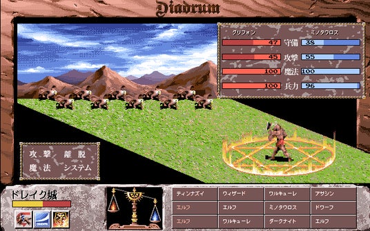 『ディアドラム』は1993年に日本クリエイトより発売された、剣と魔法、そして数々のモンスターたちが織り成す、ファンタジー・シミュレーションです。