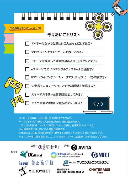 アバター、AI、3D 都市体験などの最新テクノロジーが集結するイベント。デジタル技術やアバターを活用したお仕事体験は例年お子様に人気のコンテンツです。13:30 からはアバターが進行を務める「アバタービンゴ大会」を開催します。