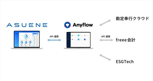 アスエネ株式会社(本社:東京都港区、代表取締役CEO:西和田浩平、以下「当社」)が運営するCO2排出量の見える化・削減・報告を支援するクラウドサービス「ASUENE」は、SaaS事業者向けAPI連携プラットフォーム「Anyflow」との連携を開始しました。「ASUENE」はAnyflowのAPI連携技術を活用し、「勘定奉行クラウド」「freee会計」「ESGTech」とAPI連携を開始しました。これにより、企業はCO2排出量の見える化や環境データの管理業務の工数を大幅に削減し、サステナビリティ経営をより効率的に推進できるようになります。