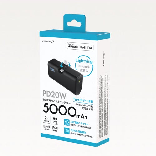 株式会社 磁気研究所(本社:東京都千代田区、代表取締役:齋藤邦之)は、同社が展開するブランド"HIDISC(ハイディスク)"より、スマートフォンやタブレットに直接挿して使用できるモバイルバッテリー「180°回転コネクター直挿しモバイルバッテリー」を公式サイト、全国のホームセンターや量販店にて発売いたします(2025年2月上旬発売)。本製品は、コネクターが180°回転することで好きな角度にでき、20W Power Delivery対応による急速充電機能など多くの特徴を備えた日々のおでかけを快適にする次世代のモバイルバッテリーです。Type-C端子とLightning端子の2種類ラインナップ。
