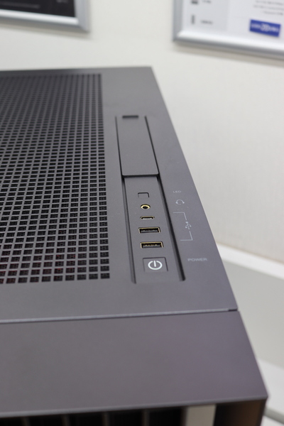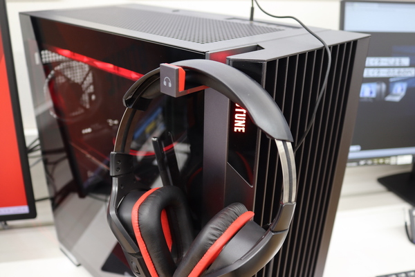 徳永さんによると、G TUNE FG-A7G80は、まずリニューアルされた新型PCケースに注目してほしいといいます。新型PCケースには展開式のヘッドフォンホルダーといったギミックもアリ! デザインはマットなグレー基調と金属質感のコントラストによってシンプルでありながら上質さを感じます。