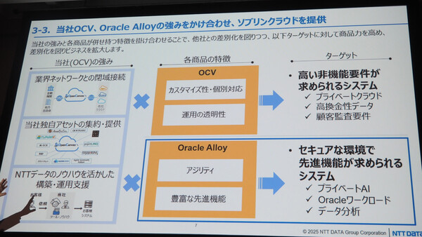 続いてはNTTデータのセッションだ。NTTデータは2024年10月に、ソブリンクラウドのサービス強化に向けてオラクルとの協業を発表している。
