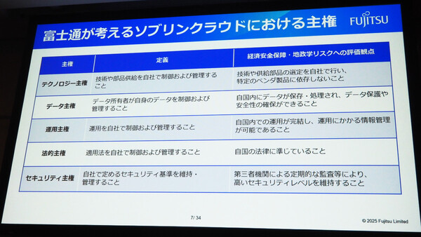 富士通:ソブリンクラウドで「5つの主権」を重視、オラクルとも対策に取り組む