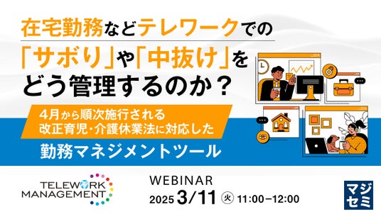 マジセミ株式会社は「在宅勤務などテレワークでの「サボり」や「中抜け」をどう管理するのか?」というテーマのウェビナーを開催します。