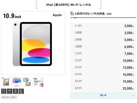 ※カリナイト調べ、2025年1月調査、「iPad レンタル」として