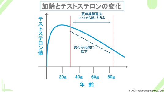 加齢と男性ホルモン(テストステロン)の変化図