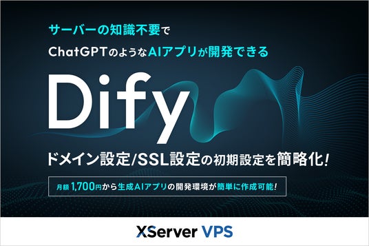 サーバー性能・コスパNo.1の『XServer VPS』、AIアプリ開発プラットフォーム「Dify」の利用がさらに簡単に!手軽&低コストな運用を実現