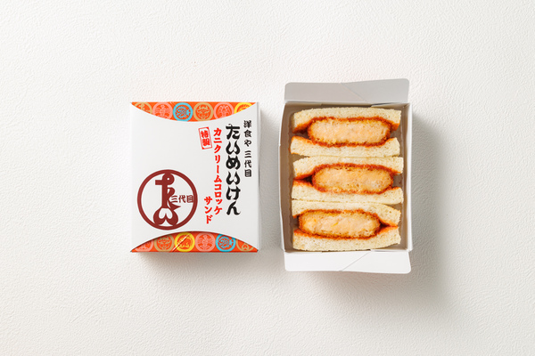 三代目たいめいけんは「カニクリームコロッケサンド」(550円)の販売を2月25日より首都圏の直営店、3月4日より小売店にて開始する。