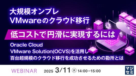 マジセミ株式会社は「大規模オンプレVMwareのクラウド移行、低コストで円滑に実現するには」というテーマのウェビナーを開催します。