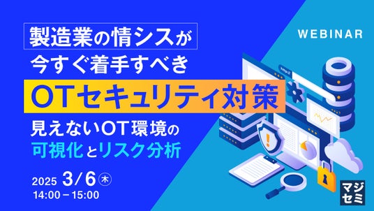 マジセミ株式会社は「製造業の情シスが今すぐ着手すべきOTセキュリティ対策」というテーマのウェビナーを開催します。