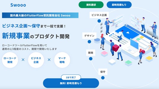 Swoooは、これまでノーコードツールBubbleをはじめとしたWebシステム開発で培ってきた豊富な経験とノウハウを活かし、企業のスマホアプリ開発を支援する「FlutterFlow受託開発サービス」を開始しました。