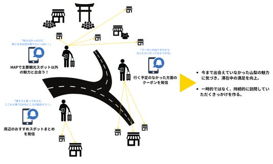 この実証実験では、山梨県の魅力をお客様に効果的に発信すると同時に、山梨県が抱える諸課題の解決に繋がる何かを得ることができればと考えています。