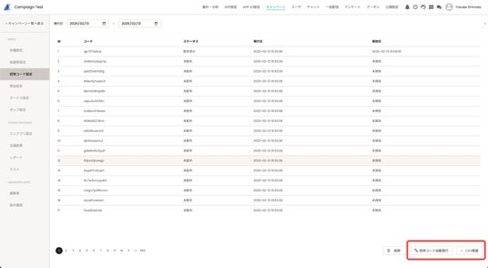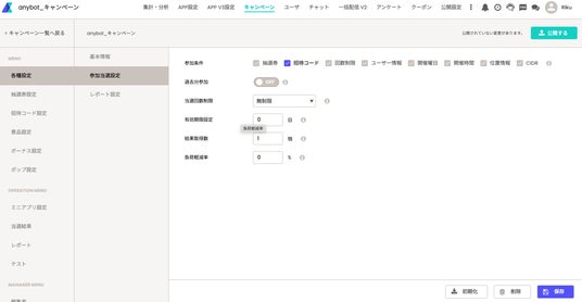1.キャンペーン>各種設定>参加当選設定>「招待コード」をチェックします。