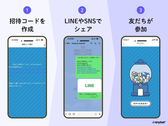 エボラニ、LINE向けマーケティングツールの「anybot」で、ユーザー自身が別のユーザーをミニゲームに招待できる機能を追加