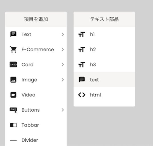 4.作成された画面で「+」を押し項目を追加します。Text>textと選んでください。