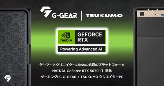 株式会社ヤマダデンキ(本社:群馬県高崎市、代表取締役社長:上野 善紀)は、TSUKUMO(ツクモ)ブランドで独自に展開するゲーミングPC「G-GEAR」とクリエイター向けPCにおいて、最新の「NVIDIA(R) GeForce RTX(TM) 5070Ti グラフィックスカード」を搭載した新モデルを3月に発売いたします。