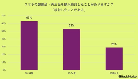 ■日本では若年層の63%がリファービッシュ品の購入を検討。年齢が高い層と比較して、認知度が高いことが明らかに