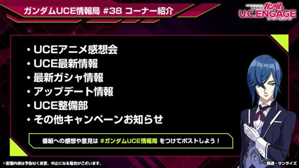 『機動戦士ガンダムUCE』の公式生配信番組「ガンダムUCE情報局#38」が2月25日19時より実施決定!