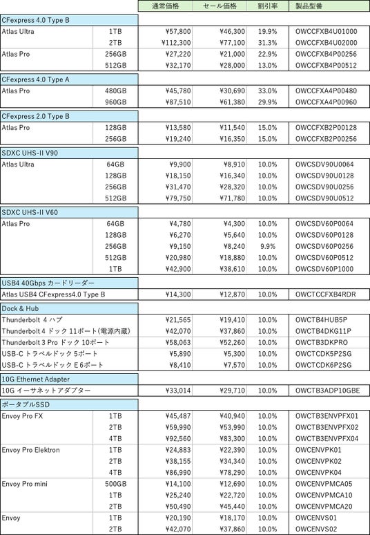 CP+2025開催期間中、アマゾンOWC直営公式ストアでCP+2025セールとしてセール価格での販売をいたします。Atlas Ultra CFexpressカードやポータブルSSD、ドッキングステーションなど対象製品は別表を参照ください。ただし在庫がなくなり次第終了となります。