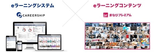 CAREERSHIP GROWTHは、LMS「CAREERSHIP」と、300タイトル1,000本以上のeラーニングを搭載したeラーニング受け放題サービス「まなびプレミアム」をセットにしたオールインワンeラーニングサービスです。