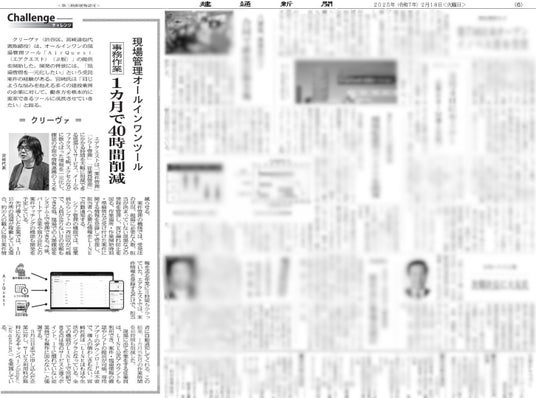 AirQuestについての記事が、2025年2月18日(火)に建通新聞社様より発刊された建通新聞の「Challenge」のコーナーにて掲載されました!