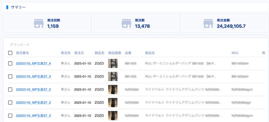 納期遅れSKU一覧納期が遅れているSKUの発注番号、発注先、発注日、数量、金額などを一覧でご覧いただけます。