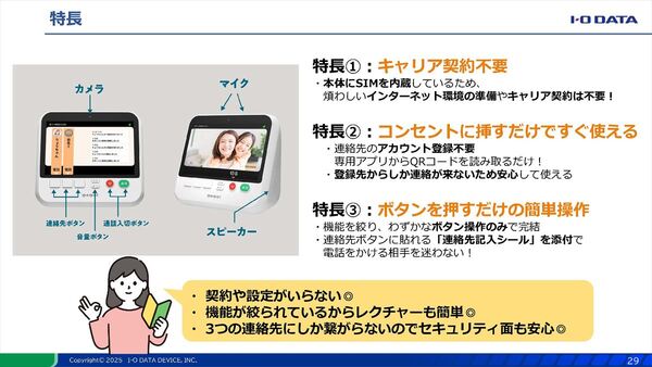 アイ・オー・データ機器は、単に機能をシンプルにするだけでなく、実利用者が使い続けられるシンプルさを追求した製品を開発することで、高齢化社会という社会課題に対応していく考え。