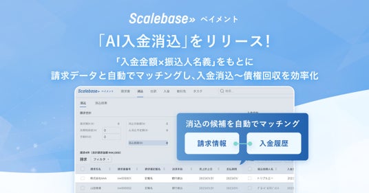 BtoB向け請求・決済システム「Scalebase ペイメント」の新機能「AI入金消込」をリリース