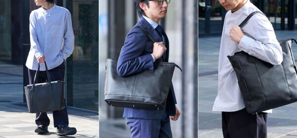 新発売のORGULLOシリーズのトートバッグは、A4サイズ対応の収納力を持ち、14.0インチのパソコンを収納できるクッションポケットが搭載されていることが特徴だ。横型は2タイプ、縦型は1タイプが用意され、縦型はショルダーベルト付きの2Way仕様で、さまざまなシーンに応じて持ち方を選べる。