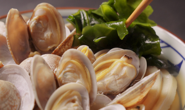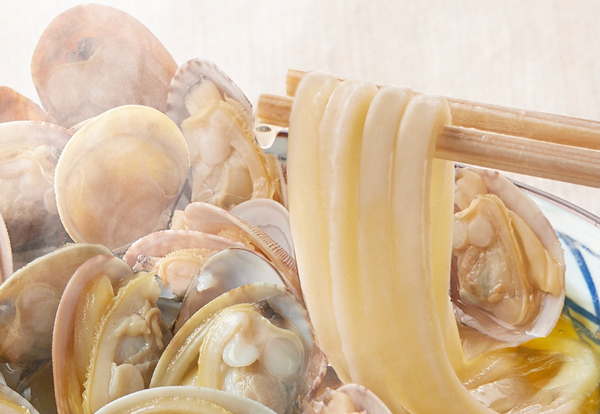 白だしと殻付きあさりを注文ごとにひと煮立ちさせ、磯の香りとあさりの旨みを最大限に引き出します。さらに、茹で釜から直接盛り付ける「釜抜き麺」で提供することで、だしがよくからんで、旨みあふれる一杯に仕上がっているそう。