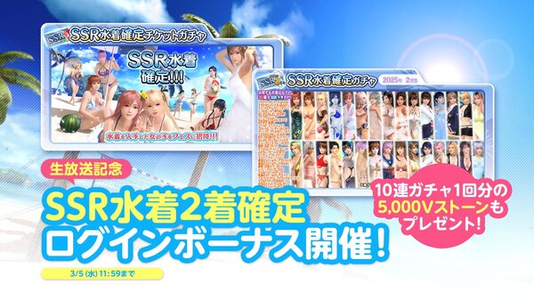 ■豪華ログインボーナスで「SSR水着2着」「無償Vストーン×5000個」をゲット!