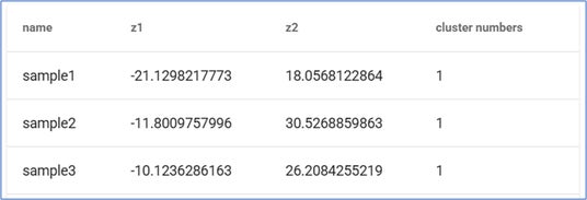 図4 クラスタリング 各実験サンプルの座標データの例(z1, z2)