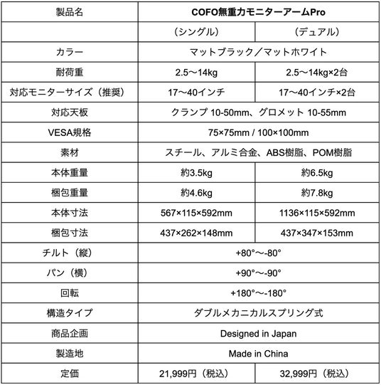 【株式会社COFO】Makuake歴代No. 1、10分で500台完売した「COFO無重力モニターアームPro」がAmazonにて取り扱い開始