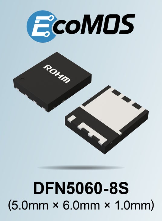 こうした中、ロームは従来と比べパッケージ内部に大型チップが搭載可能なDFN5060-8Sパッケージを新たに開発し、業界トップクラスの低オン抵抗と高SOA耐量を実現したパワーMOSFETをラインアップ。新製品は、サーバーの電源回路における高効率化と信頼性向上に大きく貢献します。
