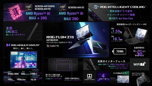 コンパクトという新たなインパクト。最新のAMD Ryzen(TM) AI MAXシリーズを搭載した2-in-1ゲーミングノートPC「ROG Flow Z13 GZ302EA」を発表