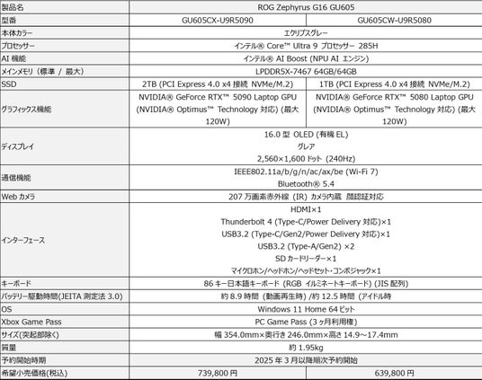 ※ROG Zephyrus G16 GU605シリーズの詳細スペックはこちらからご確認ください。