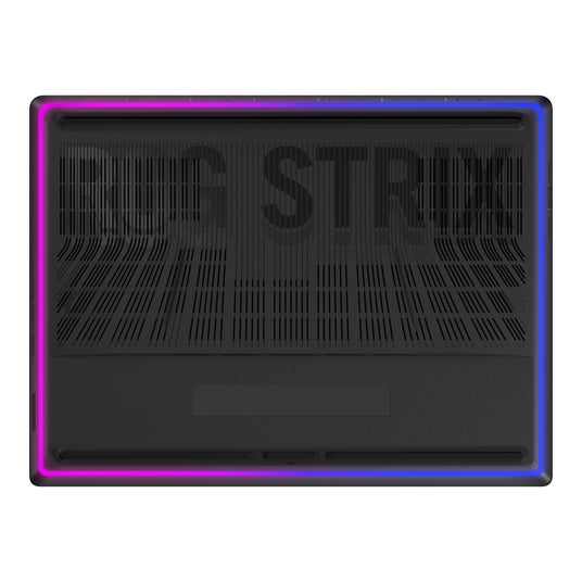 今回のROG Strix SCAR 18 G835シリーズの天板部分には9,152個、ROG Strix SCAR 16 G835シリーズの天板には8,353個の精密に加工された穴から、810個のLEDが輝き、様々なアニメーションで個性を演出することができる「AniMe Vision」ディスプレイを搭載しています。専用のユーティリティアプリ「Armory Crate」からあらかじめ搭載されているアニメーションを選択することや、自分でテキストを入力し表示させることも、お好みのGIFアニメーションをインポートして設定することで、自分だけのアニメーションを表示させることも可能です。またシャーシの底面にはフルサラウンドRGBライトバーを搭載しており、ゲームプレイ時の没入感を高めます。
