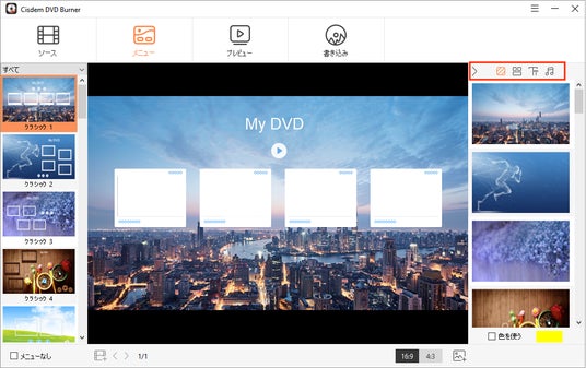 市場にはDVD書き込みソフトがいろいろありますので、サポートする出力タイプと機能はソフトによって違います。Cisdem DVD Burnerは従来の16倍の高速で動画ファイルを無劣化でDVDに書き込めるだけでなく、動画編集とプレビュー機能も搭載されています。その上、機能が豊富な割にインターフェースがすっきりとしてDVDを作成しやすいです。