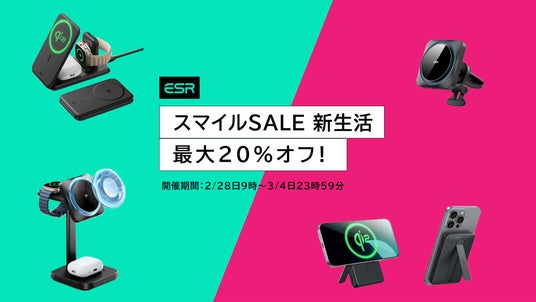 スマートフォンアクセサリーメーカーESR(本社:香港、CEO:ティム・ウー)は、2025年2月28日(金)から3月4日(火)まで、新生活スマイルセールを開催いたします。期間中、ESRのiPhone 16シリーズ用ケース、iPhone及びiPad専用スクリーン保護フィルム、モバイルバッテリー、車載ホルダー、キーボード、飛行機スマホホルダー、スマホウォレットスタンド、イヤホンケース、スタイラスペンなどが、Amazon公式ショップに15%~30%オフでご購入いただけます。