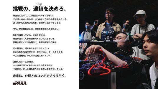 そして本プロジェクトの運営元である株式会社ePARAは、「個性を発掘し、未来をつくる。」というビジョンのもと、バリアフリーeスポーツの企画・運営・支援を行う事業を展開しています。